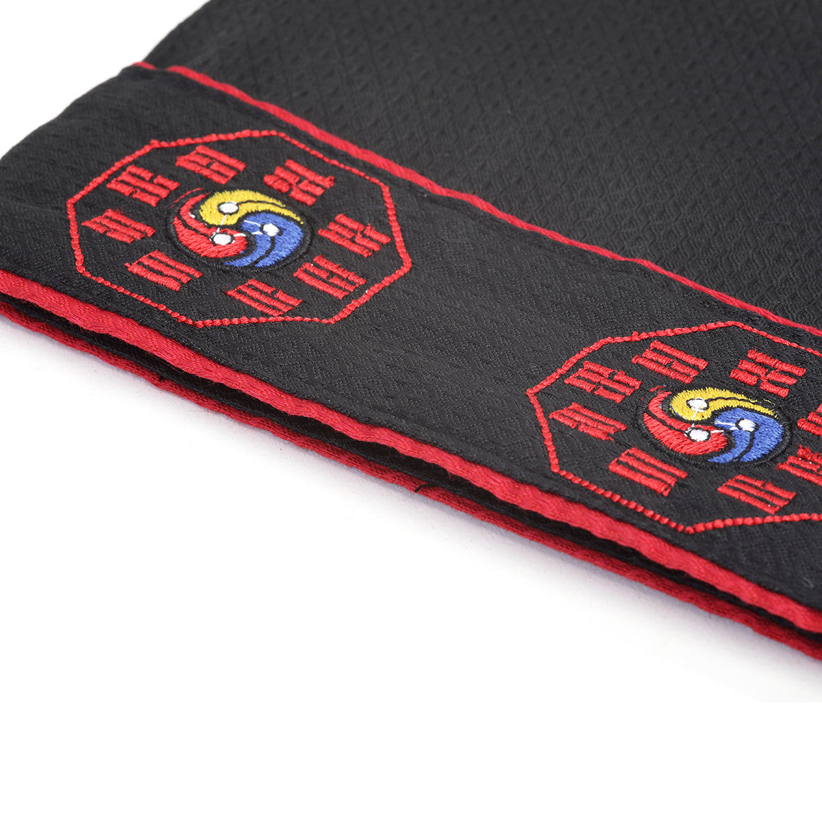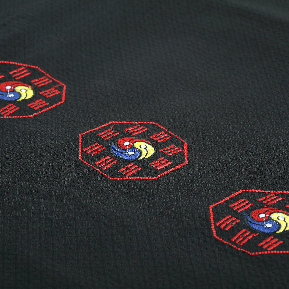 New . Ceremonial unform For Korean Martial Arts.. This uniform is made the new dobby fabric material (same material used on adidas and nike grandmaster uniforms), Bleached Colourfast black made of 55% cotton, 45% polyester. Uniform is a taekwondo style uniform with the traditional V - neck. Great For any martial arts instructors to Wear or even to be used as a freestyle uniform by students. Suit comes complete with Jacket and trousers The Motif Design Displayed in the 5th image which is shown of the cuffs of the jacket is embroided throughout the whole suit, to give the suit that outstanding look. Motif Logo embroided on boths sides of legs, On both Cuffs of jacket and front of jacket.