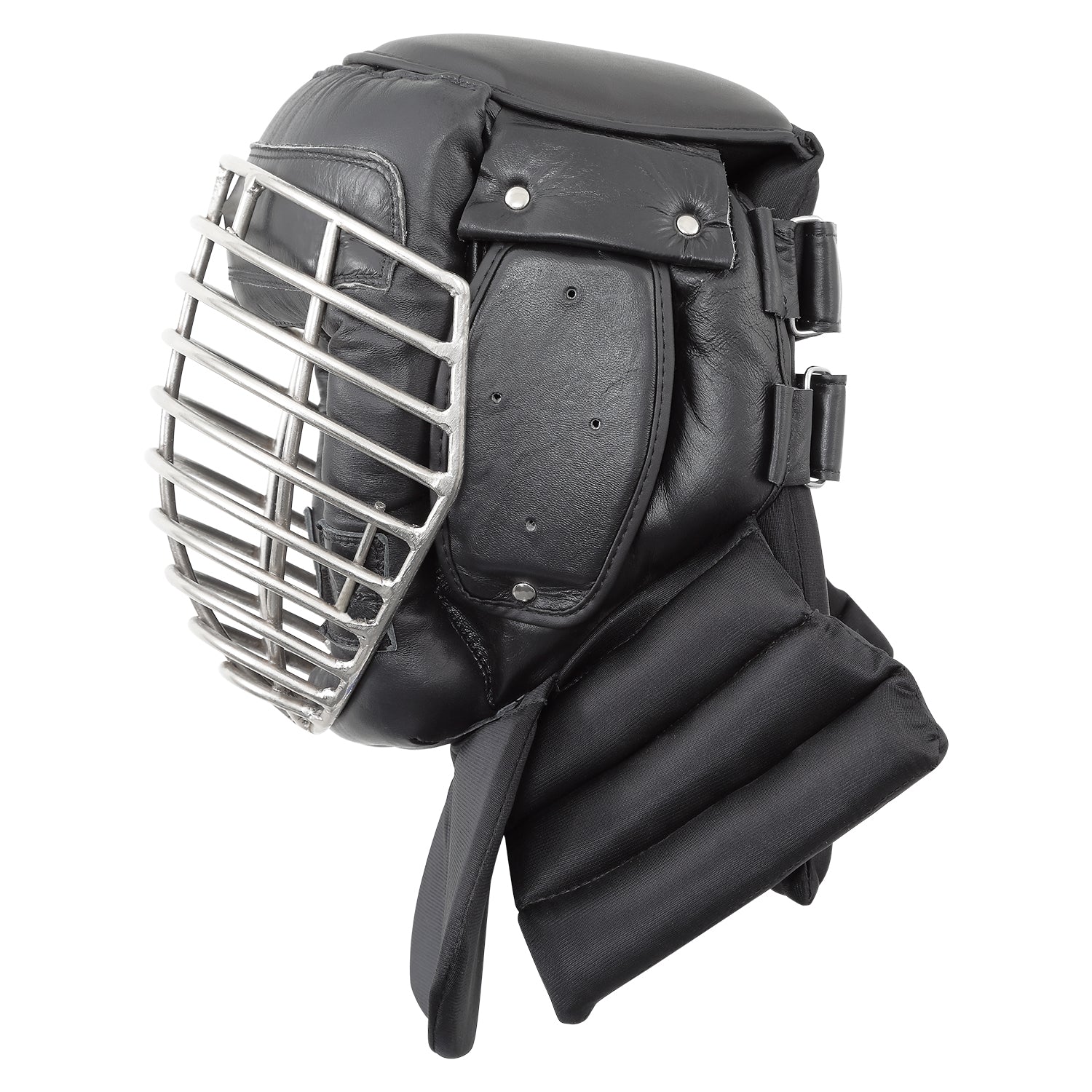 Deluxe Competition Grade Quality HeadGuard for Escrima Made from Cowhide Leather, Full contact protection for escrima training and competition. High quality and heavy duty padded headguard with metal grill. * Genuine leather * Full head and neck protection * Metal face guard * Good visibility