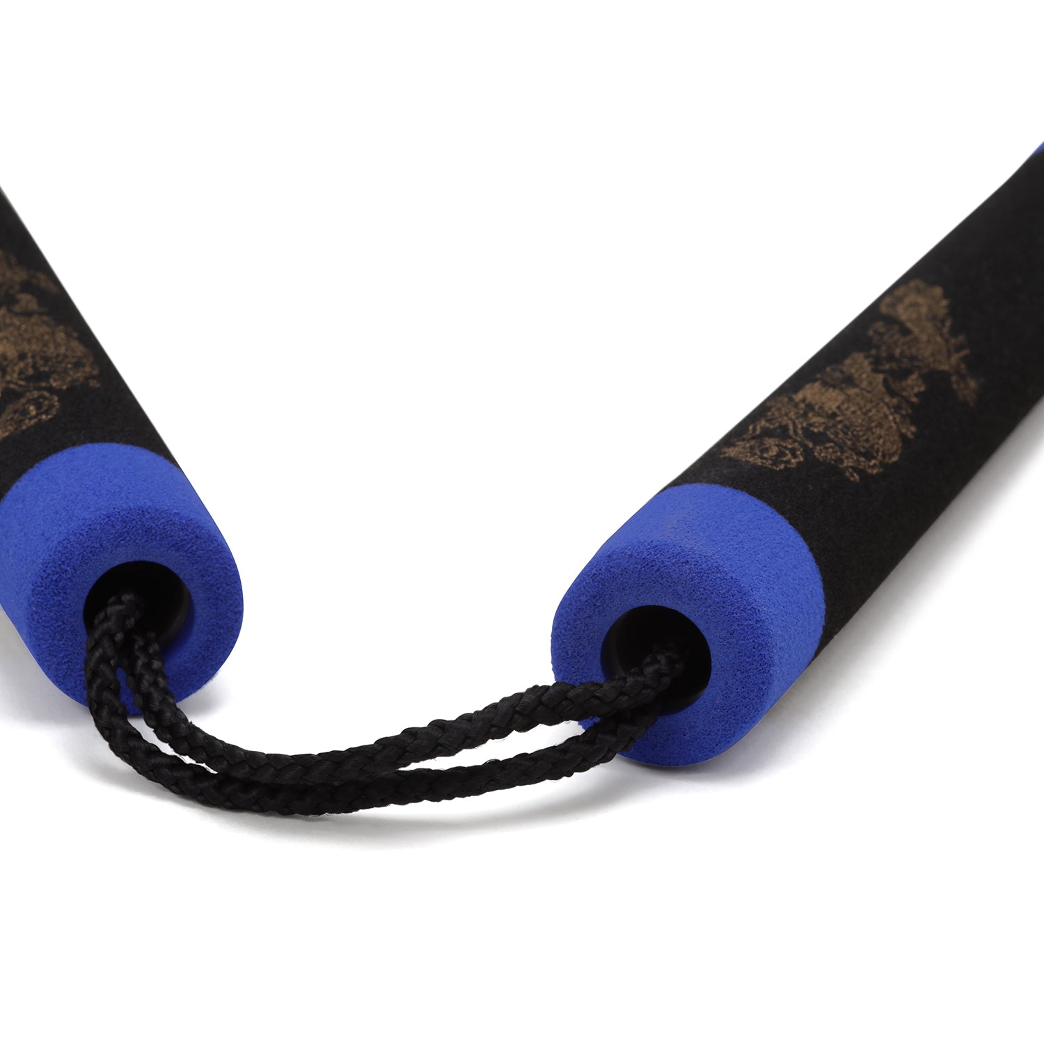 NR-005D: Foam Nunchaku with Cord Black Dragon With Blue Tips