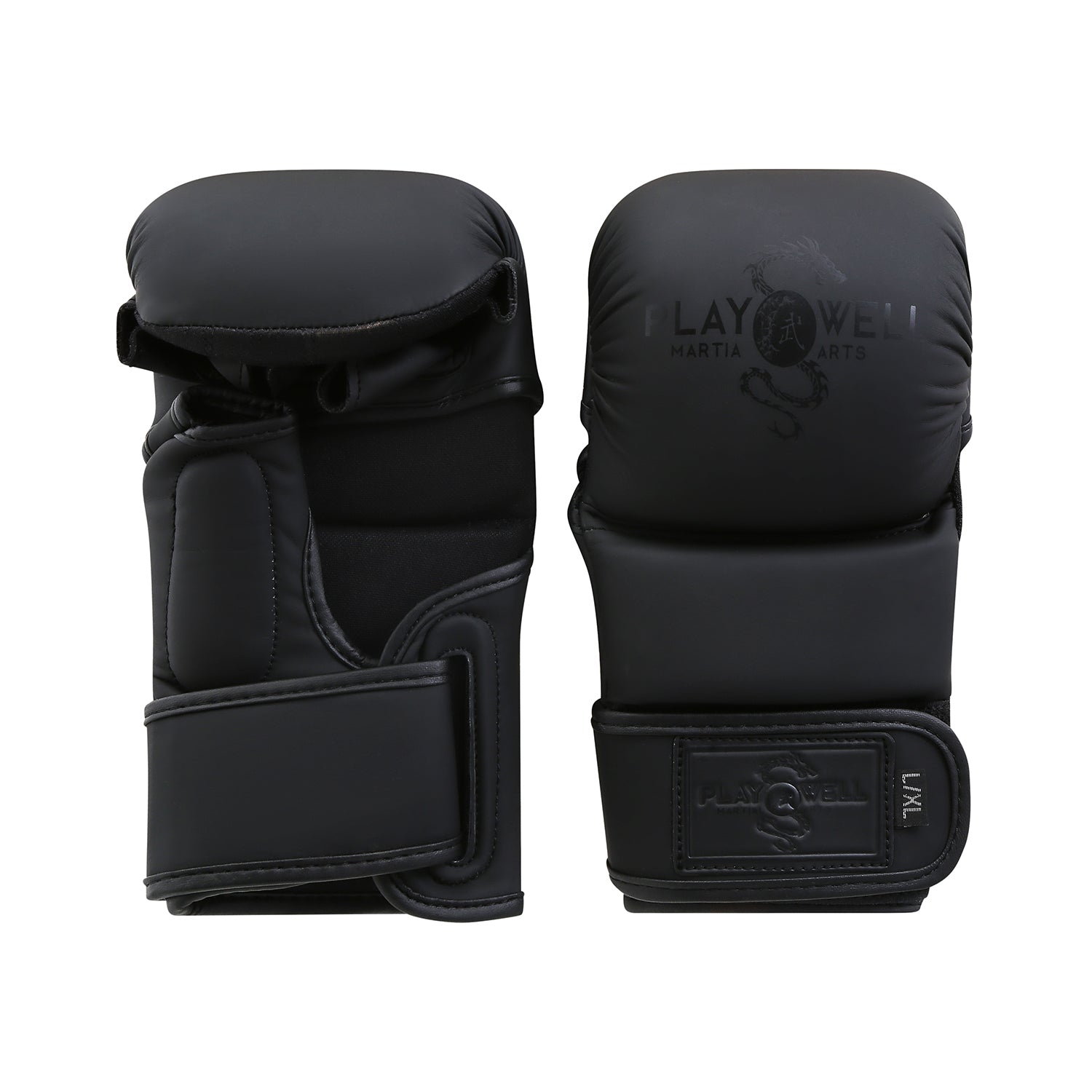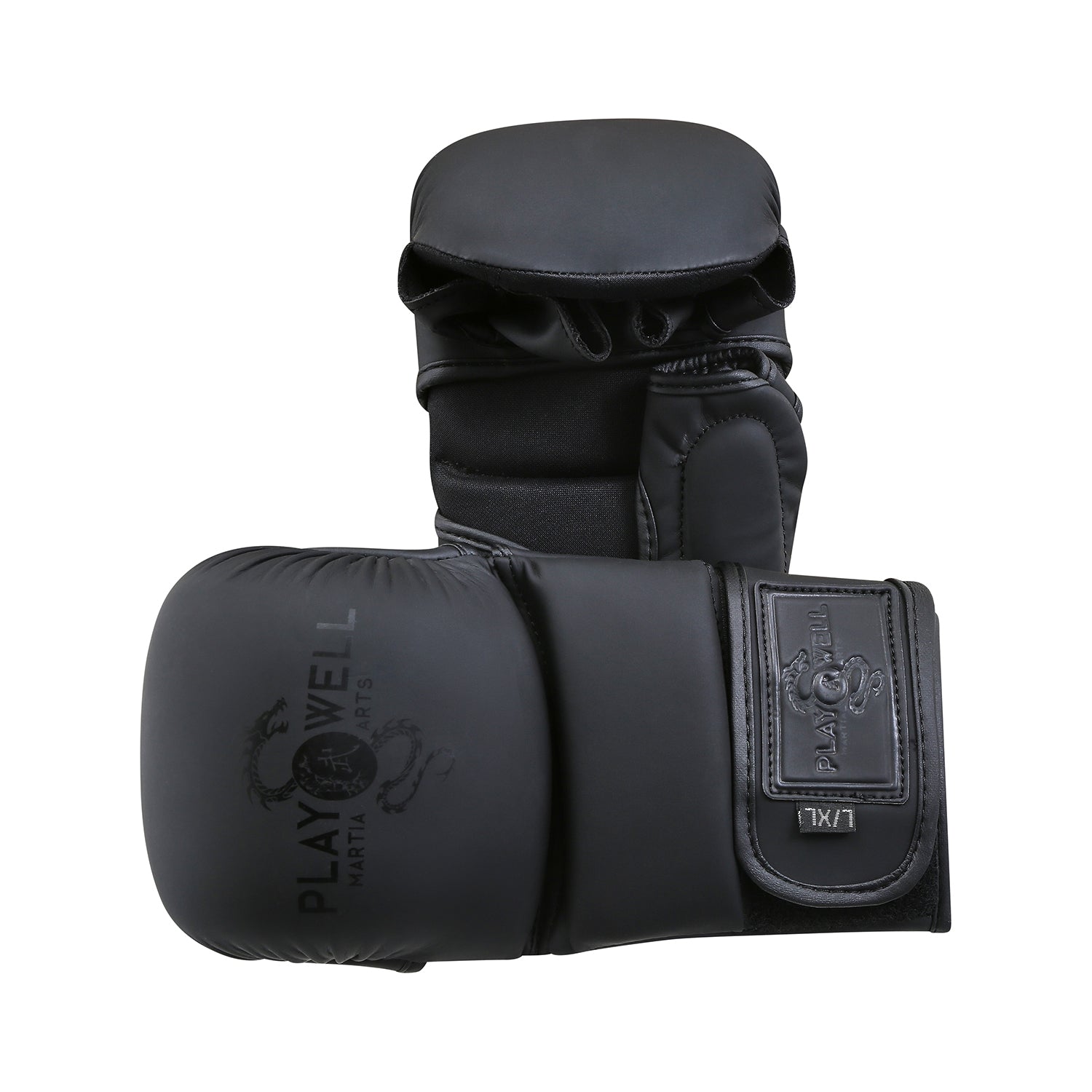 Playwell MMA "Matte Series" 7oz Sparring Gloves - Black/Black